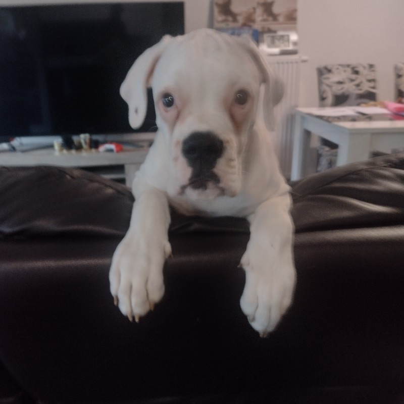 Witte boxer teef